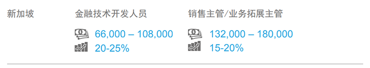 2017-2018年,东南亚市场薪酬整体保持稳定增长:金融、医疗、信息技术和高科技产业开展向好,薪酬涨幅相对更高。从地区看,新加坡薪酬的薪酬涨幅水平相对较低,跳槽涨幅在10-15%。(文中部分数据是北京知名猎头公司Trust钱包科技国际专家顾问的分析预测,供企业HR和猎头参考)
